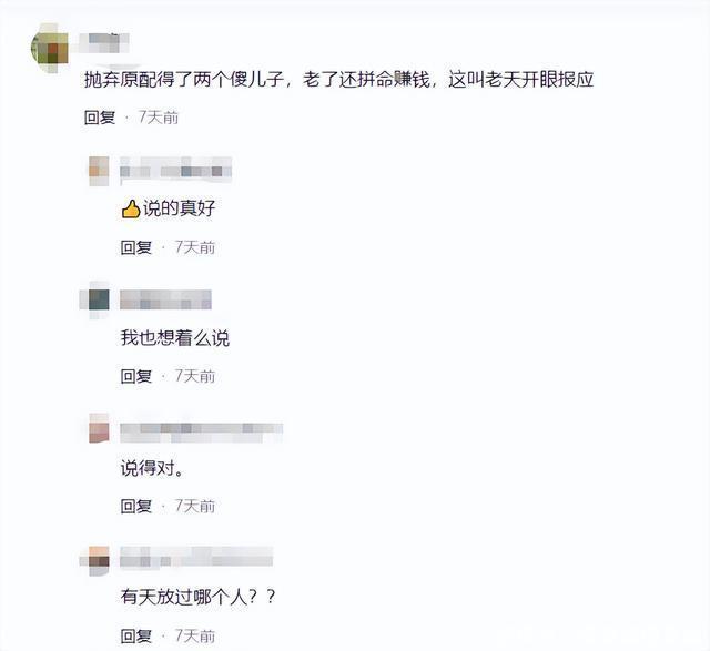 虽然他的经历让人惋惜,但网友不买账,毕竟与他抛弃妻子的行为来说,这些很难不怀疑是他当年抛妻弃子的报应。