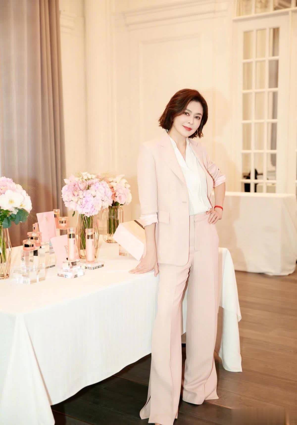 59岁关之琳依旧时髦,穿嫩粉色西装韵味十足,举手投足皆是魅力感!